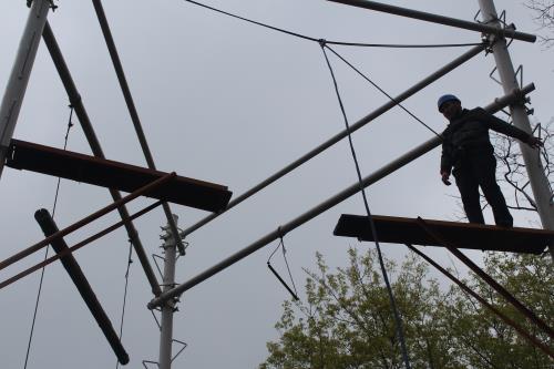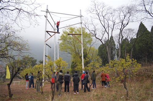 活動伊始,在張教練、王教練的指導(dǎo)下大家進(jìn)行了破冰熱身、團(tuán)隊組建和團(tuán)隊展示。隨后,正式開始今天的拓展訓(xùn)練。拓展項目有“高空跨越”、“信任背摔”和“挑戰(zhàn)150”等。