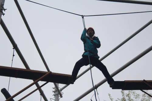 在“高空跨越”項目中,多數(shù)人心存膽怯,特別是女員工,更是神情緊張,但在教練的指導(dǎo)和大家的互動鼓勵下,氣氛逐漸舒緩。空中一小步,人生一大步”“高空跨越”讓大家突破自我,克服了心理恐懼,在團(tuán)隊的加油鼓勵下,每個人都順利通過。