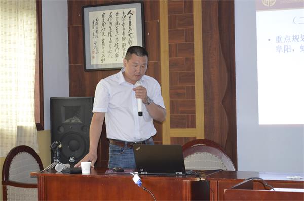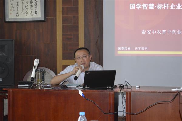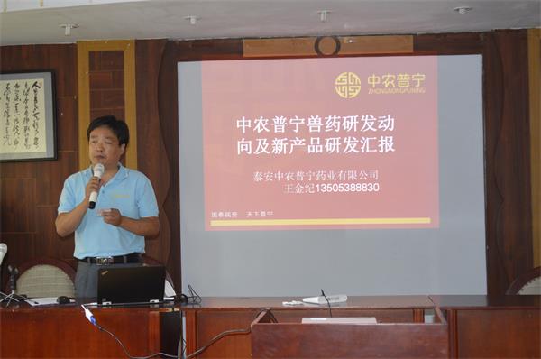 隨后公司技術(shù)研發(fā)總監(jiān)王金紀(jì)先生做了具有指導(dǎo)性意義報(bào)告,王總對(duì)當(dāng)前國(guó)家對(duì)獸藥企業(yè)的研發(fā)生產(chǎn)法規(guī)、獸藥研發(fā)形勢(shì)、行業(yè)發(fā)展現(xiàn)狀、公司現(xiàn)有產(chǎn)品情況給予了詳細(xì)說(shuō)明。