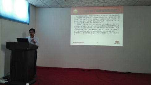 隨后會議由公司技術(shù)服務(wù)部范開見經(jīng)理作了關(guān)于《近期市場疾病流行情況及產(chǎn)品使用說明》的精彩報告。從地方區(qū)域差異、飼養(yǎng)模式不同、飼養(yǎng)品種等方面結(jié)合公司產(chǎn)品特點(diǎn),進(jìn)行集中講解。著重強(qiáng)調(diào)了管理重于治療的養(yǎng)殖理念。范經(jīng)理清晰的講課思路以及激情輕松幽默的講課方式,讓大家加深理解了產(chǎn)品。營造了濃厚的學(xué)習(xí)氛圍,提高了大家的產(chǎn)品知識水平,為后續(xù)的產(chǎn)品推廣和市場銷售打下扎實(shí)的理論基礎(chǔ)。