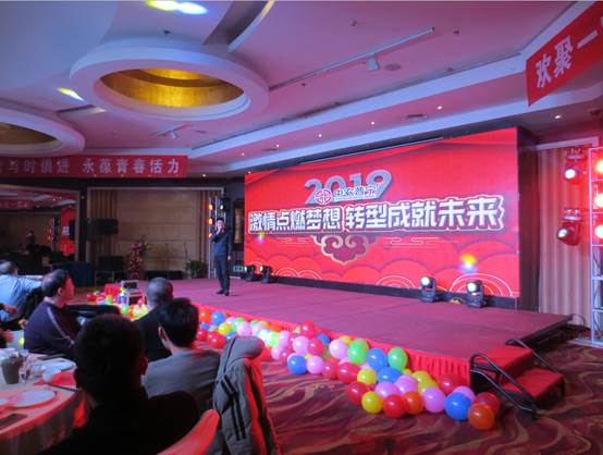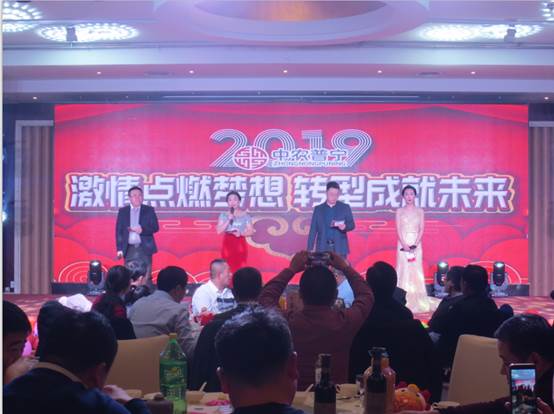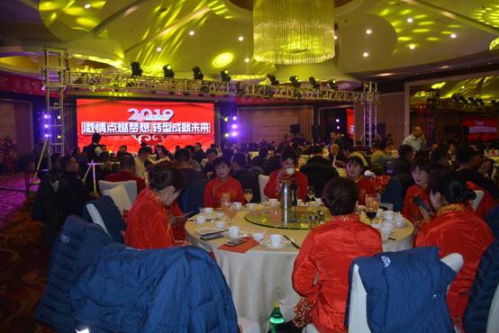 公司領導、公司部分友好人士、全體員工120余人參加了晚會。晚會以公司回顧2018《激情點燃夢想 轉型成就未來》拉開了序幕。