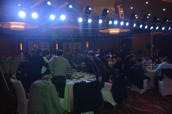 臺下一桌桌豐盛的晚餐、彼此舉杯同賀、相互祝愿。公司領導與員工親情互動、歌聲、掌聲、歡呼聲一直在晚會現(xiàn)場蕩漾。
