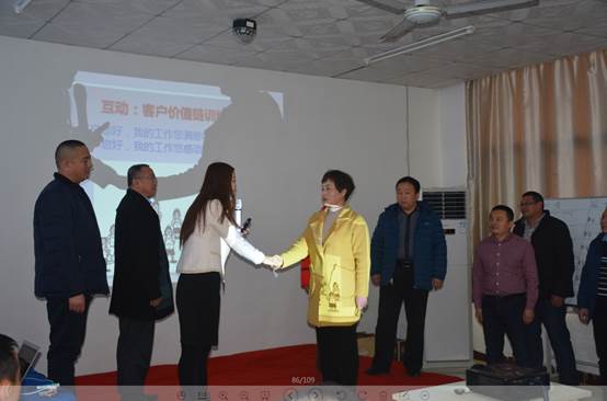 王老師以授課與體驗互動式的授課方式,通過現(xiàn)場結(jié)對子,不斷促進(jìn)中農(nóng)普寧家人拼搏進(jìn)取,做到互相監(jiān)督,互相進(jìn)步,為公司發(fā)展貢獻(xiàn)出自己的價值。現(xiàn)場士氣高漲,授課精彩實用,使大家收獲頗豐。