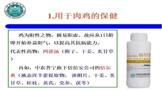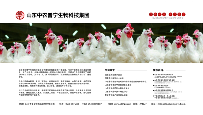 隨著政府對動物源性食品安全問題的極大關(guān)注以及民眾對食品安全重要性認識的不斷提高,中獸醫(yī)藥必將在畜禽綠色健康養(yǎng)殖中發(fā)揮出更大的作用,為此,作為以致力于動物健康與食品安全為發(fā)展宗旨的中農(nóng)普寧生物科技集團,通過中獸醫(yī)專家的潛心研發(fā)經(jīng)過多年臨床實踐,結(jié)合國內(nèi)肉雞養(yǎng)殖特點,隆重推出了安爾康、安若素、倍爾爽等中藥產(chǎn)品,為養(yǎng)殖業(yè)保駕護航。