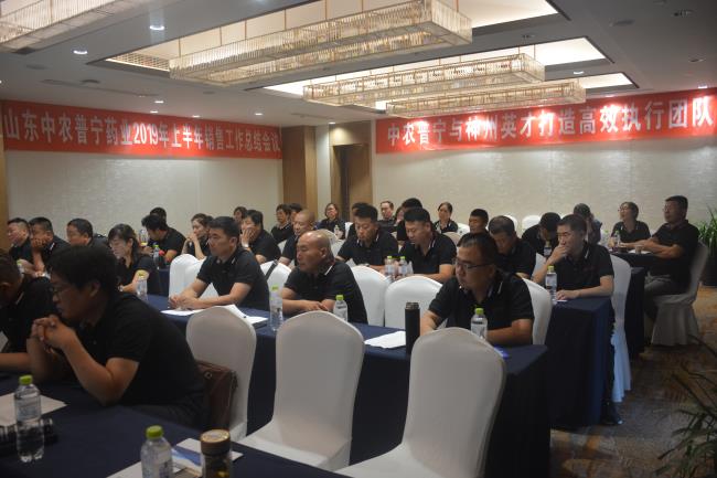 7月12日-15日山東中農(nóng)普寧生物科技集團(tuán)中農(nóng)普寧藥業(yè)2019上半年工作會議在泰安金盛大酒店圓滿召開,本次會議分別從國學(xué)培訓(xùn)、業(yè)績倍增系統(tǒng)培訓(xùn)、市場銷售匯報、技術(shù)培訓(xùn)、旅游活動五個部分進(jìn)行。