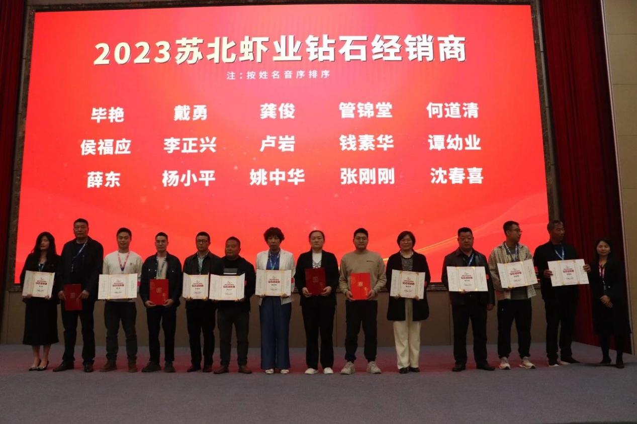 會議最后舉行頒獎典禮,為2023-2024年蘇北優(yōu)秀養(yǎng)蝦從業(yè)者頒發(fā)2023蘇北養(yǎng)蝦高手、2023蘇北蝦業(yè)鉆石經(jīng)銷商兩大獎項。